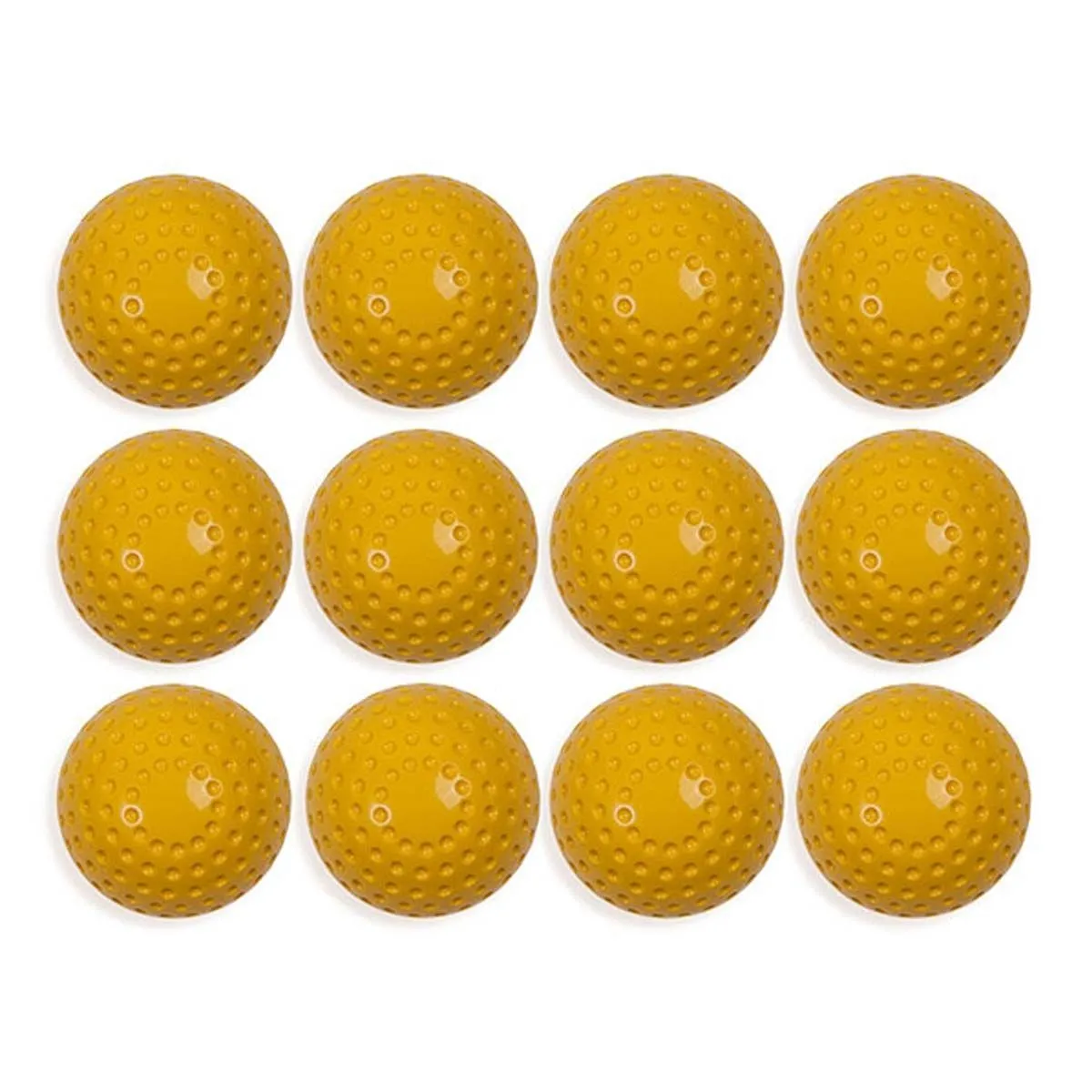 This 12″ dimpled pitching machine softball is made of a plastic and vinyl composite for exceptional durability. The dimpled design is perfect for use with any standard pitching machine and the bright yellow color offers high visibility!