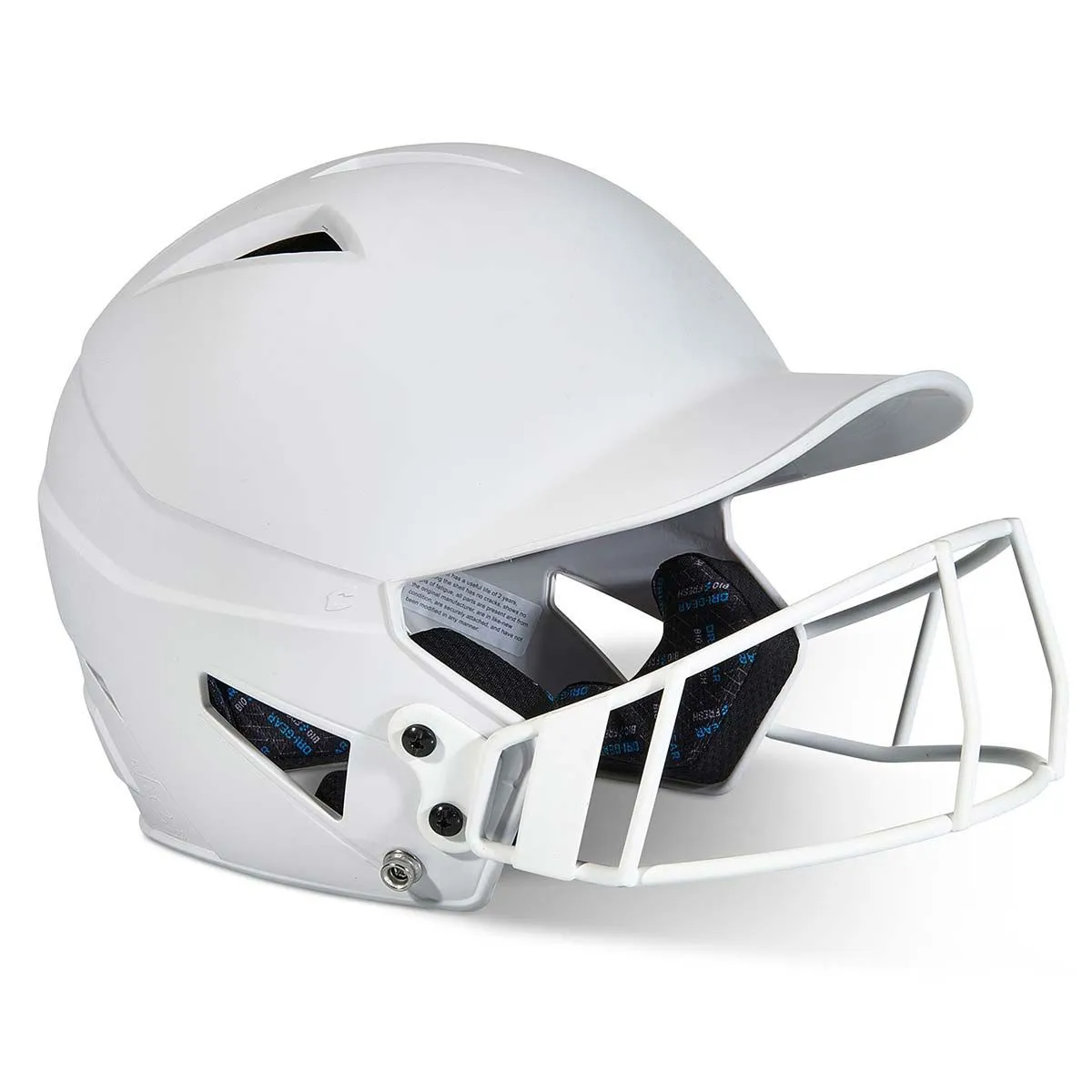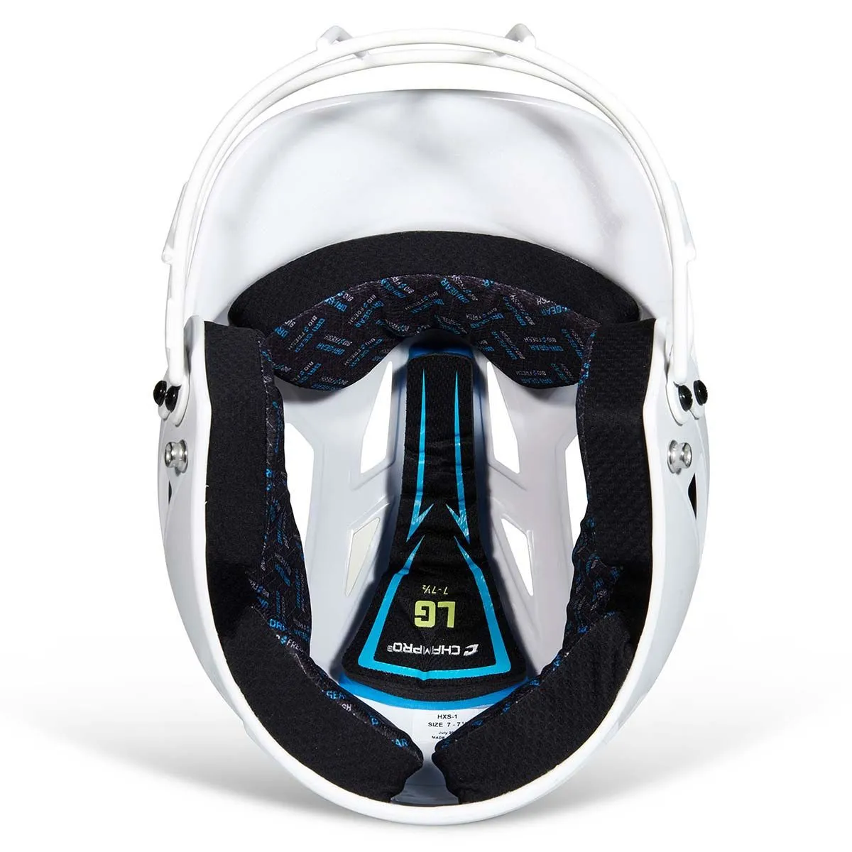 The Champro HX Rise fastpitch softball batting helmet features a matching solid color matte finish on both the helmet and the included faceguard. The HX Rise is equipped with plenty of ventilation holes for maximum airflow. A weight-optimized shell with impact foam provides an ideal fit and feel. The helmet’s mesh-wrapped pads provide comfort and durability when you step into the batter’s box. Champro’s BioFresh/DRI-GEAR® moisture wicking pad liner will keep you cool at the plate. The Champro HX Rise batting helmet meets the NOCSAE safety standard.