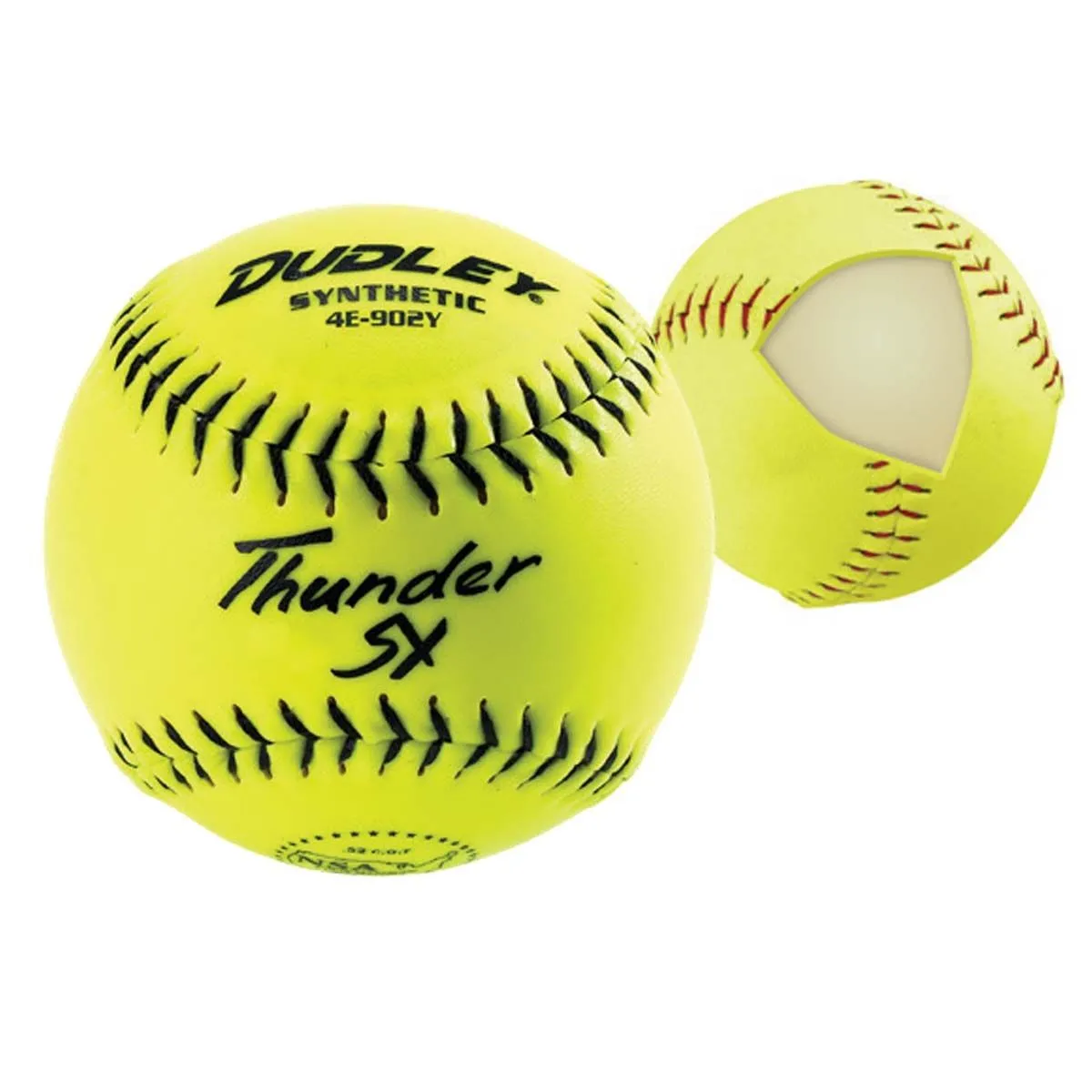 The Dudley Thunder SY NSA ICON synthetic 11″ slowpitch softballs feature a poly center that is precision blended and cross-linked. This allows for high density and maximum reliency for great feel and playability.