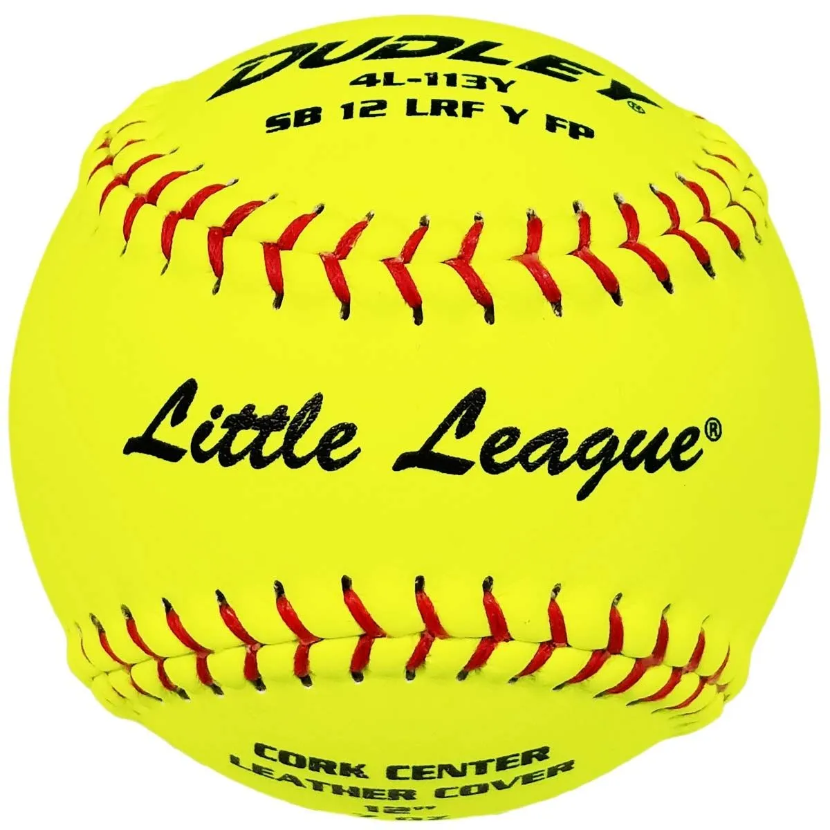 The Dudley 4L113Y fastpitch Little League softball features a leather cover, raised seams for superior grip and a cork center. This ball is the official softball of the Little League World Series and preferred ball of tournament play.