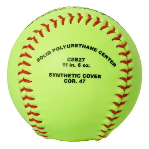 The Pro Nine Classic M slowpitch softball is USSSA certified with its 40 COR, 325 lb compression and medium seam height. Sold by the dozen, this lower compression, poly center softball won’t dent your bat on impact. The synthetic leather cover features a tacky grip feel for better control on your throws.